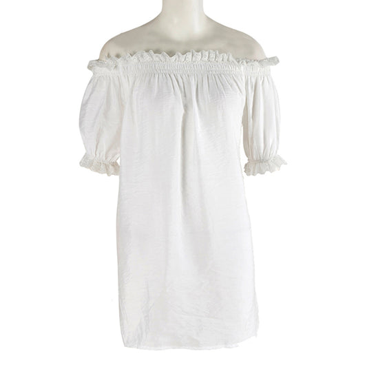 In stock&Dropshipping Popular cotton linen off the shoulder puff sleeve short tops in white. Wholesale is supported.