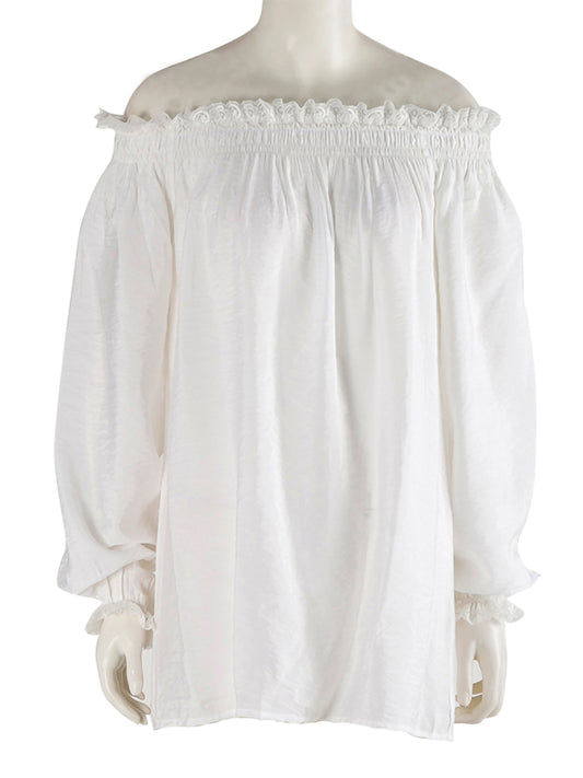 Tencel - cotton white breathable long - sleeved 1950s - 1960s Style Off - Shoulder Cotton Peasant Blouses