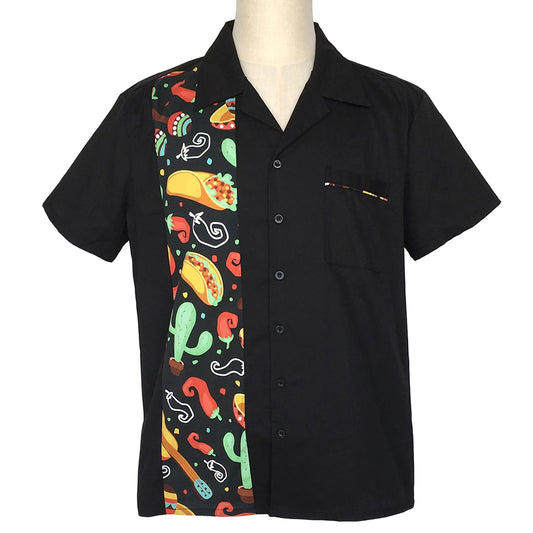Men's Classic Red Bowling Shirt - Black Contrast Collar & Cuffs