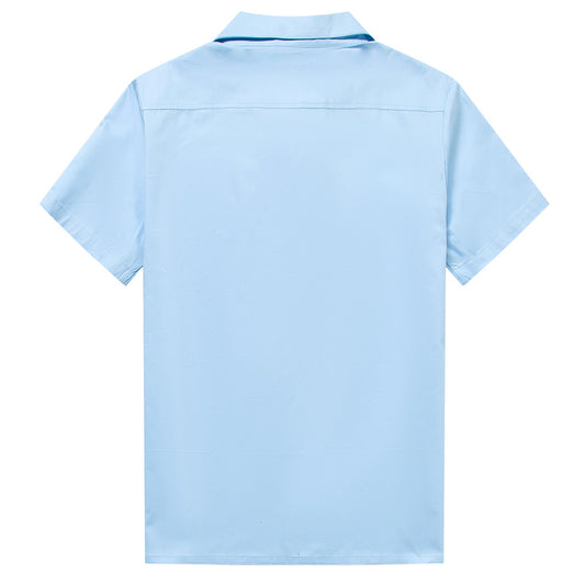 Blue and white contrasting men's shirt street punk hip-hop youth cotton half sleeved shirt
