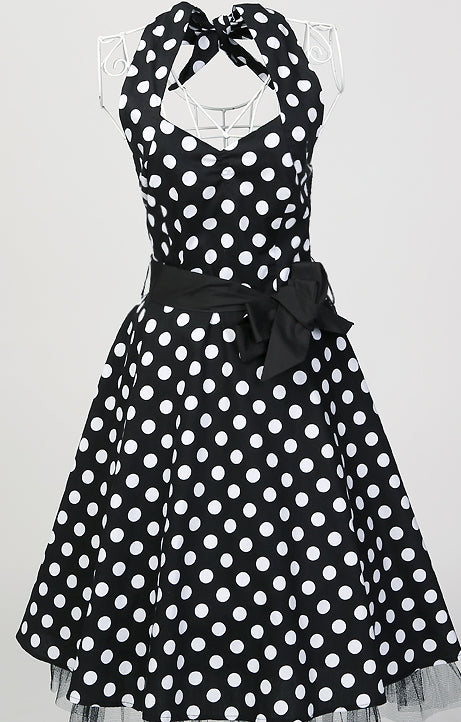 Best - Seller! Retro Polka - Dot Halter Dress with Waist - enhancing Belt Wholesale customization