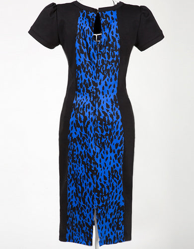 Best - Seller! Short - Sleeved Round - Neck Bodycon Dress in Stylish Black - Blue Leopard Print - Exuding European - American Flair