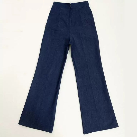 Best - selling! Stylish Plus - Size Wide - leg Navy Trousers with Chic Red Buttons