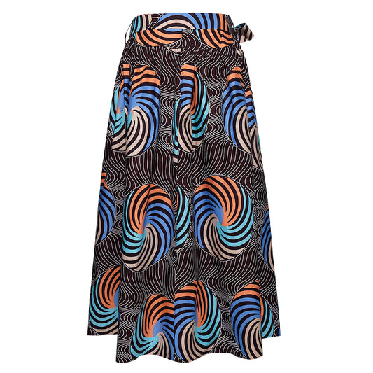 African Wax Fabric Midi Skirt - Art Deco-Inspired Geometric Swirl Boho Skirt