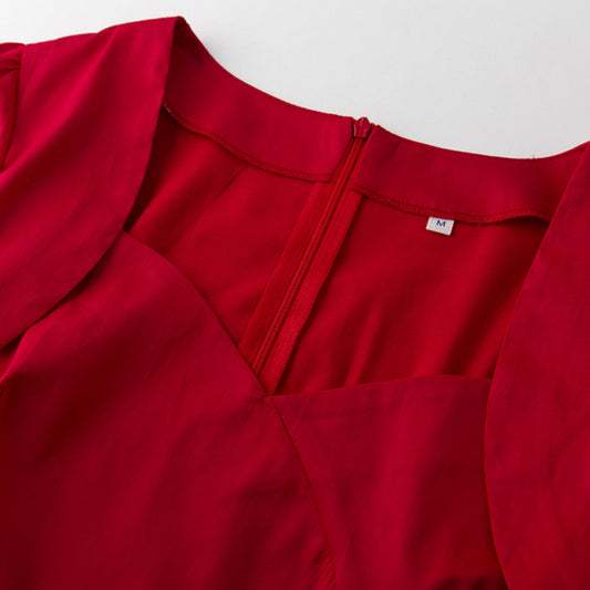 1950s American Country Meets French Retro - Sexy & Slimming Short - Sleeve Top with Unique Square & Heart - Shaped Neckline