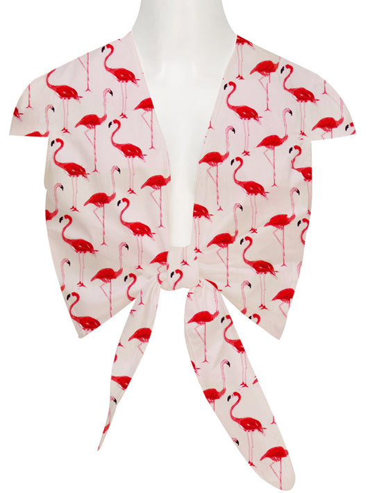 Chic White Tie - Front Crop Top | Flamingo & Pineapple Prints Optional, Elegant V - Neck Sleeveless Design