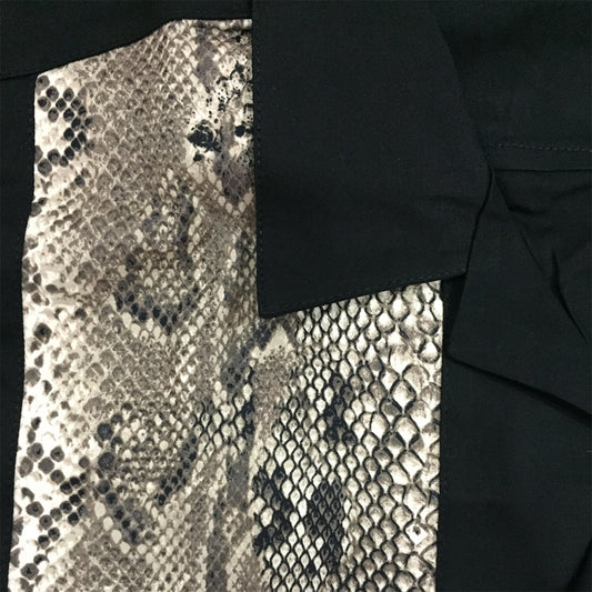 Black Cuban Collar Shirt with Snake Print Casual Retro Short Sleeve Men's Cotton Shirts