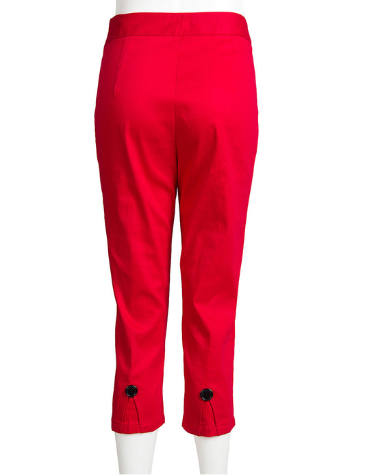 Scarlet Red High-Waist Ankle Pants with Button Hem | Slim Fit Stretch Trousers for Women - Effortless Chic for Daily & Office