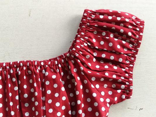 Rockabilly Pinup Style Red Polka Dot Off Shoulder Top, Vintage Inspired Retro Blouse for Women