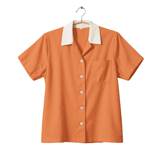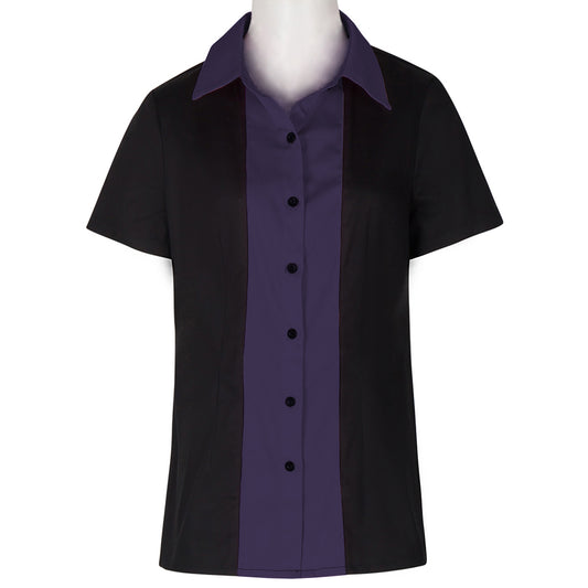 Women’s Vintage Short - Sleeve Shirt with Contrast Collar | Retro Button - Down Blouse
