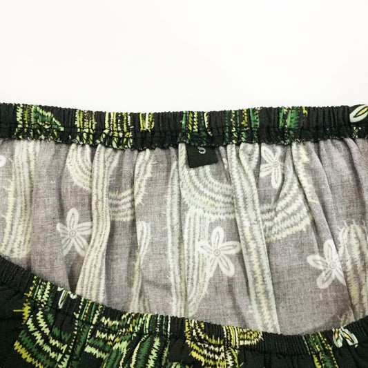 Vintage Country Cactus Print Off - Shoulder Top Puff Sleeves & Fitted Waist Women Blouse