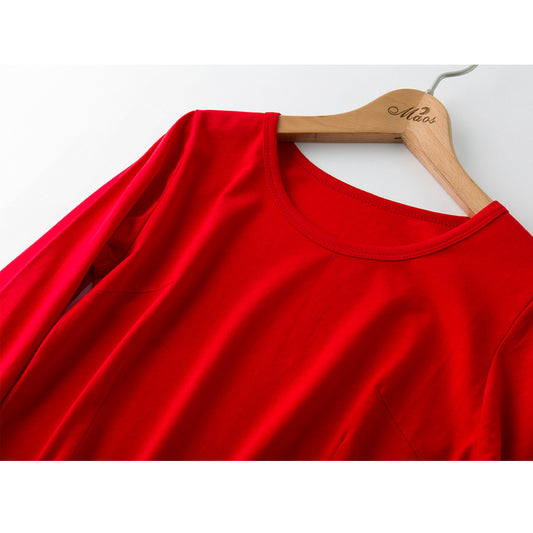 Women's Classic Red Crew Neck Top - 3/4 Sleeves, Soft Cotton Fabric for Daily Wear