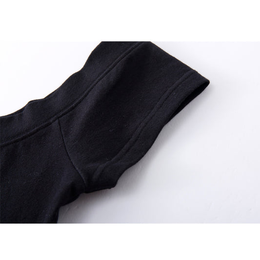 Women's Black Off - Shoulder Slim Fit Short - Sleeve Casual Top, Basic Solid Color T - shirt for Daily Wear