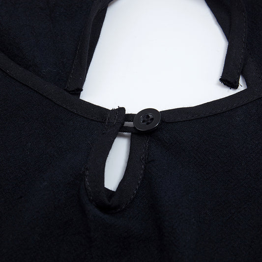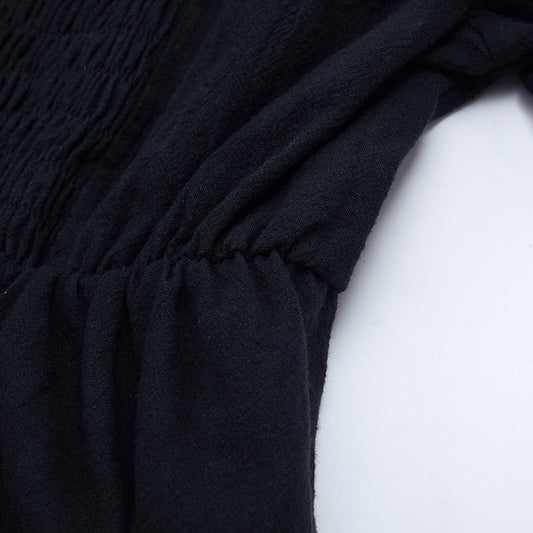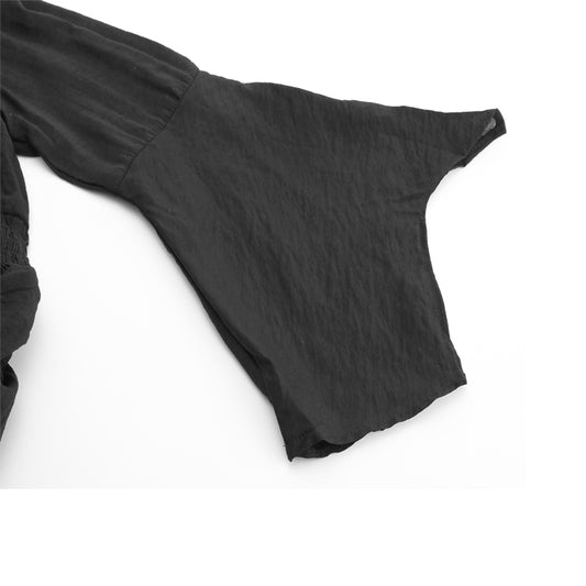 Must - Have Gothic Short - Sleeved Blousess: Square Neckline, Shirred Detail & Asymmetric Hem for Mysterious Style