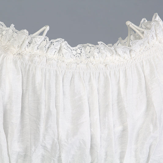 Tencel - cotton white breathable long - sleeved 1950s - 1960s Style Off - Shoulder Cotton Peasant Blouses