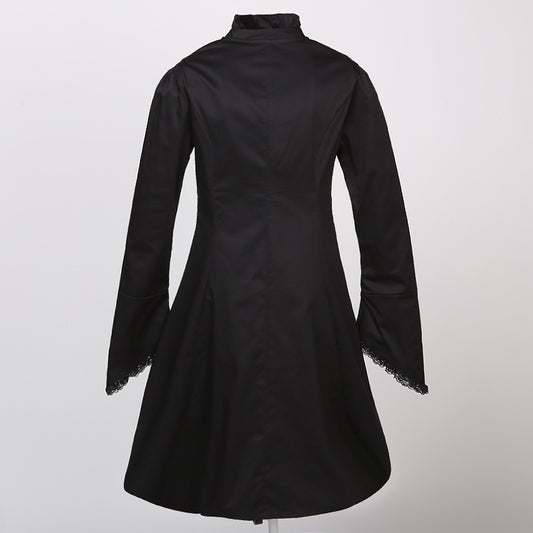 Gothic - inspired Black Blouse Unique High - low Hem Black Shirt with Delicate Lace Cuffs