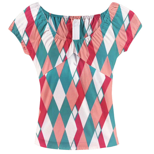 Rockabilly 1950s 1960s Style Cotton Off Shoulder Short Sleeve With Argyle Print Blouse