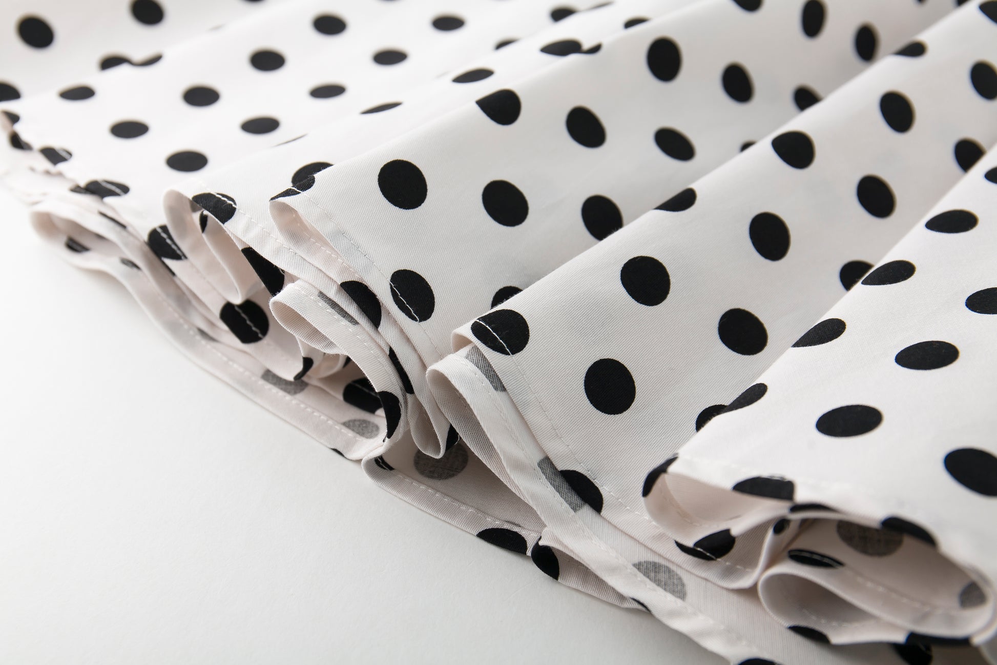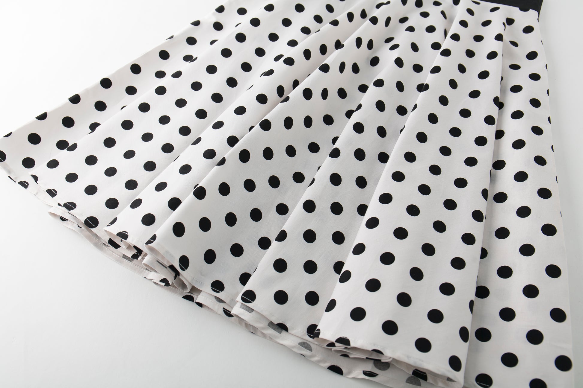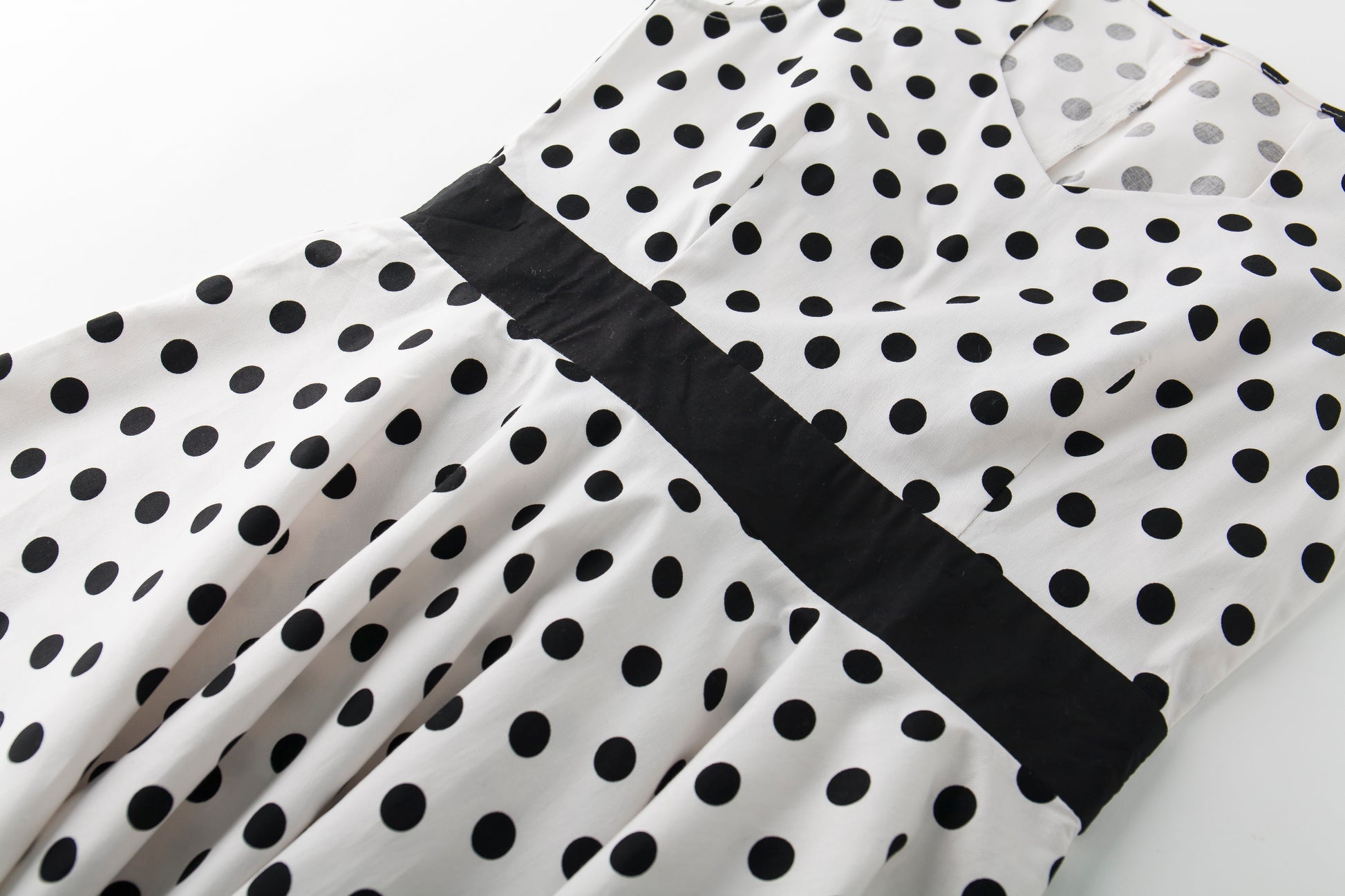 Women's Vintage Polka Dot V - Neck Cap Sleeve A - Line Swing Dress with Black Belt for Cocktail Party Evening Event