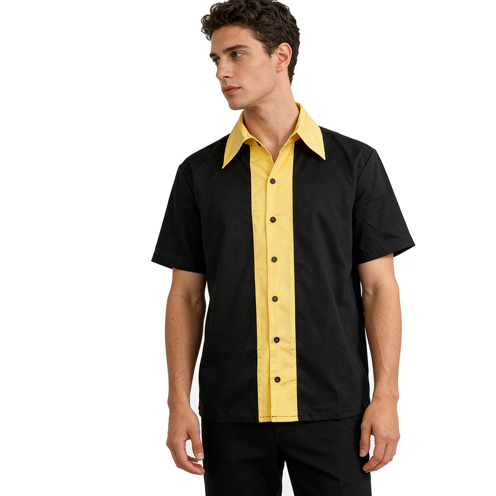 - Style & Design: Timeless retro bowling shirt with bold black and yellow vertical stripe, classic pointed collar, and button-down front. Unisex fit for both men and women, perfect for vintage lovers and casual street style.