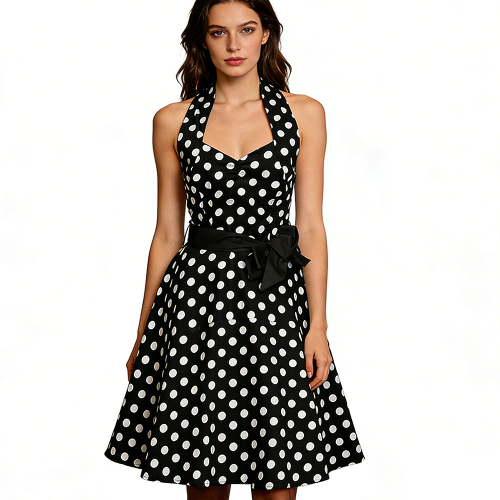 Best - Seller! Retro Polka - Dot Halter Dress with Waist - enhancing Belt Wholesale customization