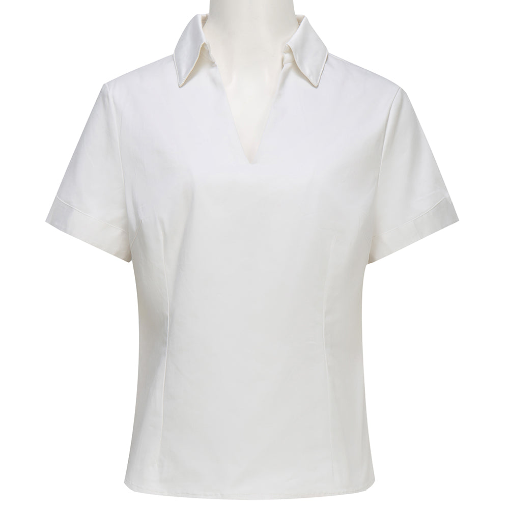 Design details: Short - sleeved, with a convertible collar and V - neck design