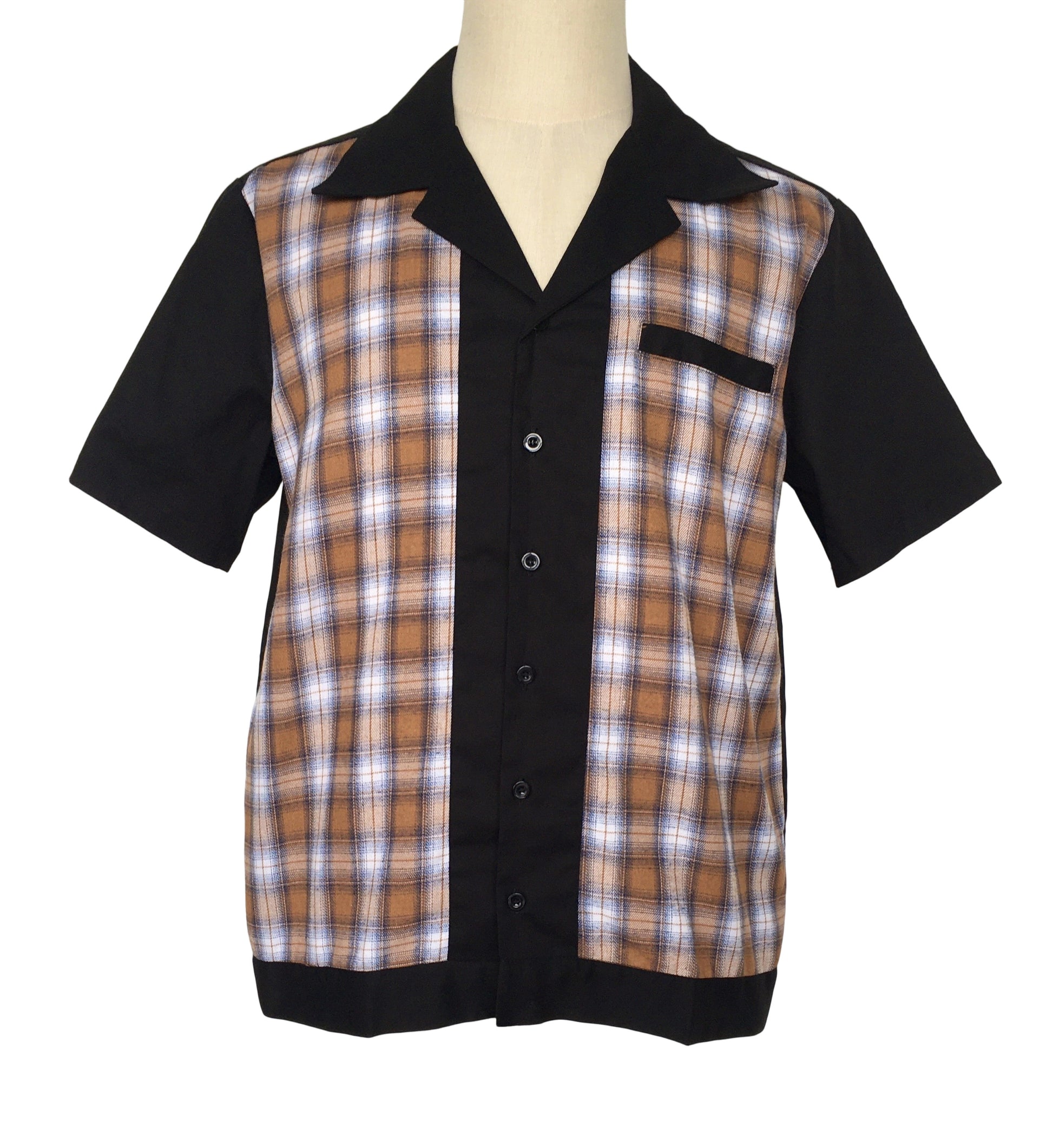 - Vintage Rockabilly Aesthetic: Brown plaid pattern with black trim panels, perfectly recreating the 1950s bowling shirt style — ideal for pinup retro parties and daily casual wear