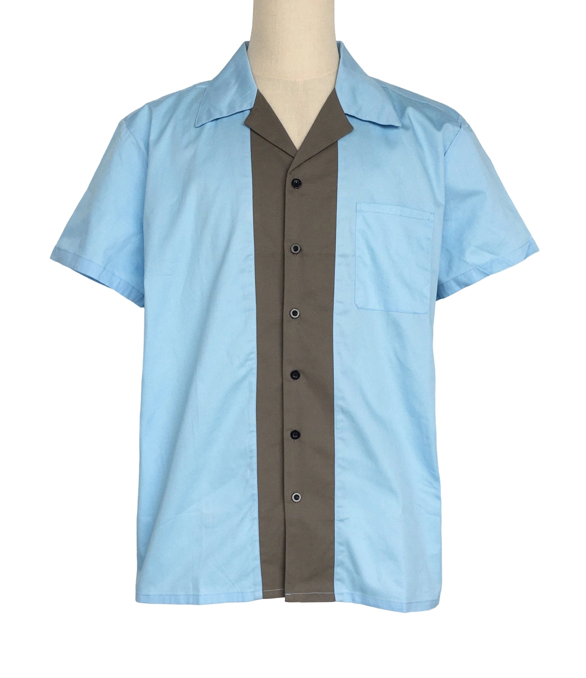 - Design highlight: Light blue × khaki vertical color block — breaks the monotony of solid shirts, adds a subtle vintage vibe. Classic collared + button-down design, plus a small chest pocket (perfect for your phone or sunglasses!).