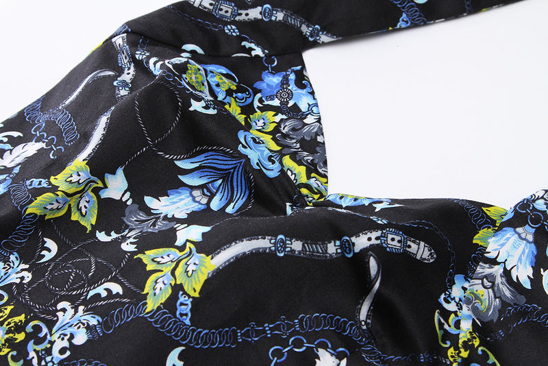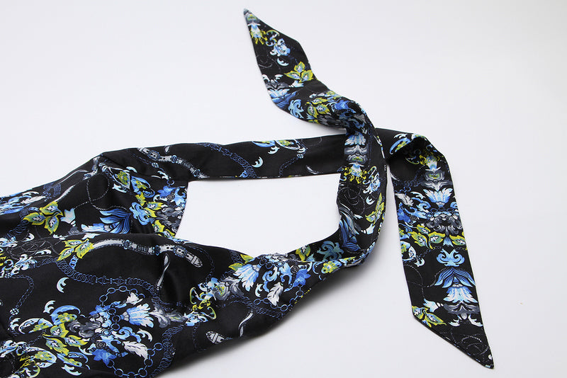Artistic Floral Print:Dark base with blue, green, and white patterns creates a moody yet vibrant vintage aesthetic—unique and eye - catching.