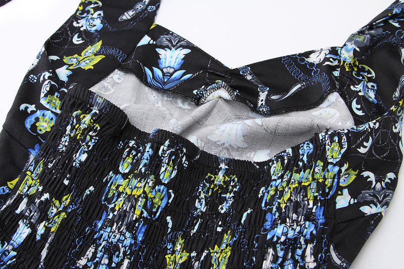 1950s Retro Glamour, Reinvented:This dress channels the timeless elegance of 1950s Hollywood—think red - carpet starlets and garden soirees. The intricate, art - deco - style floral print adds a modern twist, balancing vintage charm with contemporary artistry.、