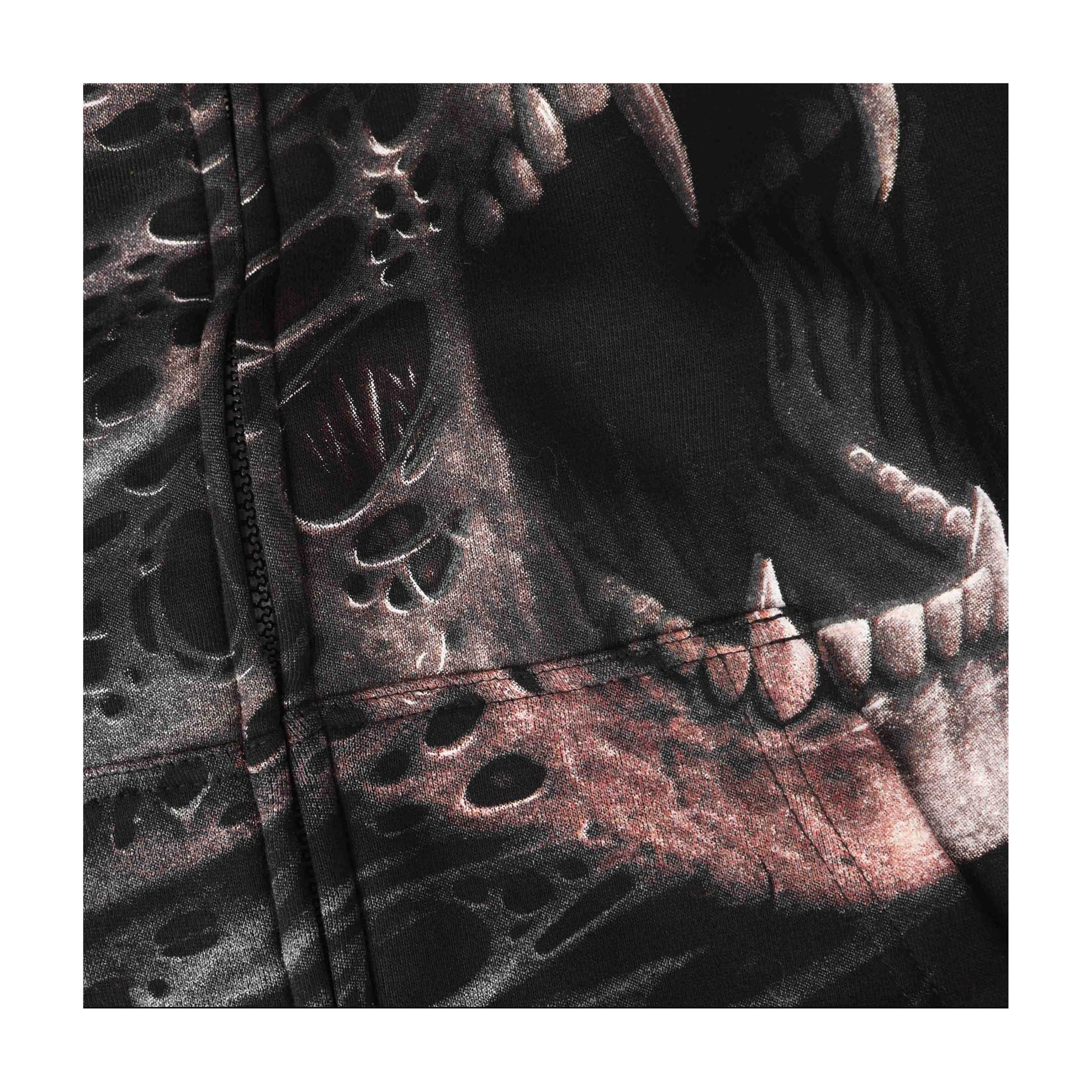 Unisex Streetwear Punk Gothic Skull Zip-Up Hoodie – Dark Themed Graphic with Bold Edgy Design, Perfect for Goth Fans & Bold Outfits